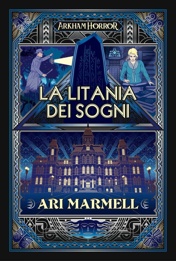 Arkham Horror è un gioco da tavolo cooperativo creato nel 1987 da Richard Launius e distribuito dal 2005 da Fantasy Flight Games in due edizioni progressivamente migliorate, espanso in altri titoli (come Le case della follia che utilizzano le stesse ambientazioni e meccaniche di gioco) e in versione – altrettanto fortunata – gioco di carte con una marea di espansioni. In Arkham Horror le tematiche lovecraftiane vengono piegate alle esigenze ludiche: un gruppo – più o meno fortuito e spesso male assortito – di investigatori deve indagare su eventi misteriosi o sparizioni legate al tentativo da parte di fazioni di cultisti di evocare divinità o Grandi Antichi. Ovviamente il gioco deve offrire ragionevoli possibilità di successo ai giocatori, mentre nelle opere lovecraftiane la conclusione vede spesso il protagonista sopravvissuto solo per essere internato in manicomio (dove del resto gli morirono entrambi i genitori di Lovecraft). Se è concessa questa espressione ripresa da un diverso medium: il gioco, rispetto alle storie, ha un approccio maggiormente “arcade”. E mantengono questo approccio anche le storie dedicate al gioco, pur mantenendo i riferimenti all’universo fantastico lovecraftiano. In inglese sono attualmente uscite 16 opere narrative ispirate ad Arkham Horror di cui solo le prime quattro per ora disponibili anche in italiano e l’ultima – La litania dei sogni – pubblicata da poche settimane. I quattro libri sono: