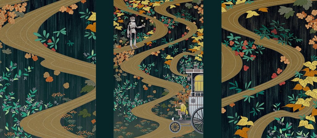Ma vediamo di cosa parlano. Innanzitutto l’ambientazione: una luna, con un solo continente. Durante il periodo di massima espansione industriale sono state create schiere di robot per svolgere i lavori pesanti ma, ad un certo punto, essi hanno acquisito coscienza ed hanno rifiutato di continuare a svolgere i lavori. Questo ha prodotto un completo ripensamento del modello di sviluppo: i robot sono stati liberi di condurre la loro esistenza come ritenevano in un’area del continente lasciata libera dalla presenza umana – le terre selvagge – e il modello industriale basato sul petrolio e su creazione e utilizzo di materiali ecologicamente insostenibili abbandonato in favore di riciclo e riuso in tutti gli ambiti della vita, comprese strade e edifici, sia nei villaggi sia nell’unica città di Panga. Gradualmente l’equilibrio ecologico della luna si è ripristinato ed è in questo momento che ha inizio la storia del monaco Dex che si occupa, nel monastero dedicato a Allalae (Dio delle Piccole Comodità), di tenere curato il giardino. Dex è raffigurato mediante diversi tra gli stereotipi dell’omosessuale: pieno di dubbi, fissazioni e insoddisfazioni. Una di queste è quella di non vivere a maggiore contatto della natura, potendo addormentarsi ascoltando il canto dei grilli. Questa insoddisfazione lo spinge ad abbandonare il proprio ruolo per diventare un monaco itinerante che svolge il servizio del tè nei villaggi. Il servizio del tè si adempie viaggiando a bordo di una sorta di roulotte a pedali (mi auspico a pedalata assistita) per i villaggi e mettendo a disposizione, per chiunque ne abbia bisogno, ascolto, comprensione, conforto e un tè caldo di una miscela appropriata per la situazione. Dopo un disastroso inizio, Dex mette a frutto le proprie conoscenze delle piante e diventa un vero e apprezzato esperto del servizio del tè. Ma sente che ancora non ha raggiunto il suo obiettivo e decide di inoltrarsi nelle terre selvagge alla volta di un antico monastero abbandonato. È proprio all’ingresso nelle terre selvagge che Dex incontra un robot – Cappello di Muschio – designato dalla comunità robot per indagare su come si sia evoluta la specie umana. Qui inizia una dinamica – spesso esilarante – “buddy-buddy” sui due che non si capiscono e a tratti si detestano ma che pian piano arrivano ad apprezzarsi a vicenda e a non poter più fare a meno l’uno dell’altro. Un salmo per il robot ci mostra Dex che finalmente – con il fondamentale aiuto di Cappello di Muschio – arriva al santuario (che si rivela meraviglioso, anche per il panorama) e riesce ad addormentarsi al suono del canto dei grilli. Prosegue poi in un salmo per l’universo con i due che escono dalle terre selvagge ed iniziano a girare per i villaggi umani di Panga per permettere a Cappello di Muschio di “studiare” l’evoluzione umana e agli esseri umani di vedere dopo secoli un robot. Assistiamo all’accoglienza in un villaggio entusiasta della novità ed in un altro dove la gente rifiuta la tecnologia e quindi è ostile al robot, per finire nella festa con cui la famiglia allargata di Dex accoglie il nuovo ospite.