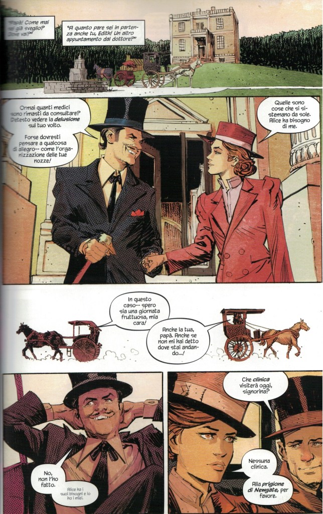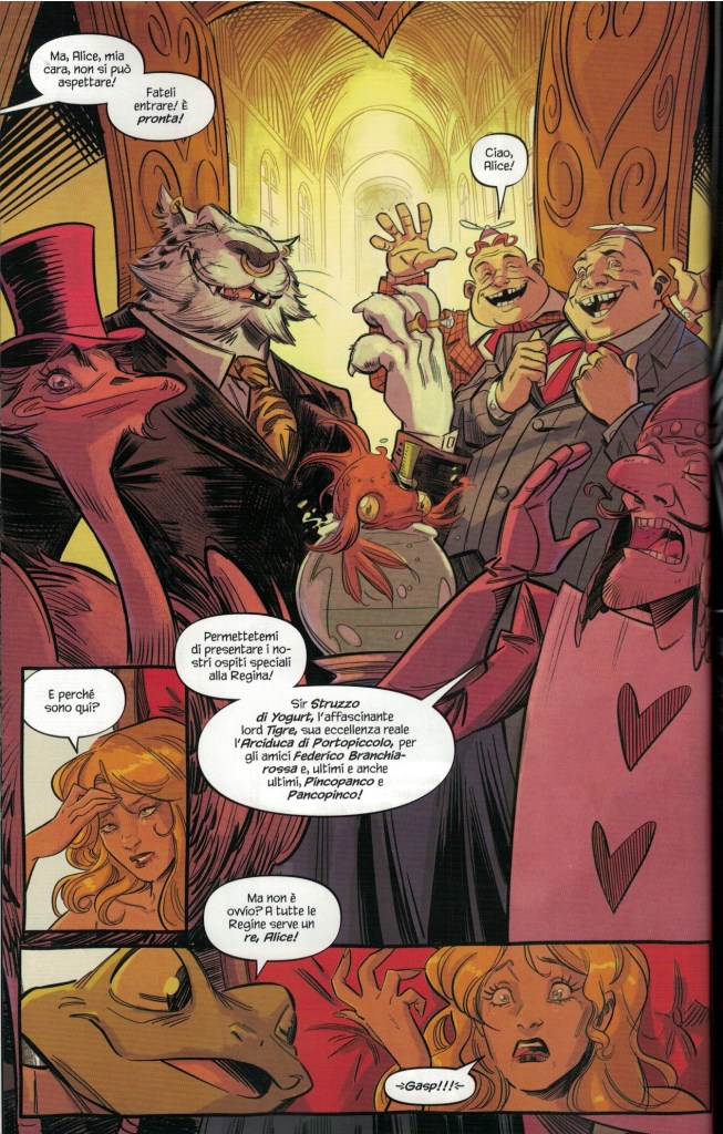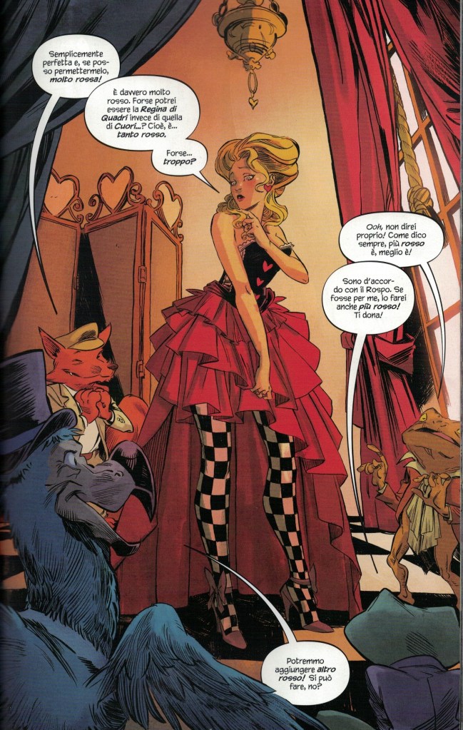Poco meno di un anno fa presentavo, su questo blog, la graphic novel di Dan Panosian e Giorgio Spalletta Alice per sempre (ovviamente ispirato al capolavoro di Lewis Carroll). Il mio giudizio non era stato completamente positivo così, quando nei mesi scorsi è stato pubblicato il “seguito” Alice mai più (sempre per SaldaPress), sono stato in dubbio per il relativo acquisto. Ho comunque alla fine deciso di dar fiducia alla storia e ai suoi autori. E in effetti alcuni problemi che affliggevano Alice per sempre sono qui risolti: Panosian e Spalletta si sono scambiati le ambientazioni e – anche se non c’è più la loro decisa differenziazione – Spalletta sembra molto più a suo agio con le ambientazioni oniriche del Paese delle Meraviglie e la storia è molto più lineare ed evita di disperdersi lungo sentieri che poi non percorre. Tanto la trama è più “semplice” e lineare rispetto ad Alice per sempre che Alice mai più pare una storia più breve, mentre invece la paginazione è la stessa.