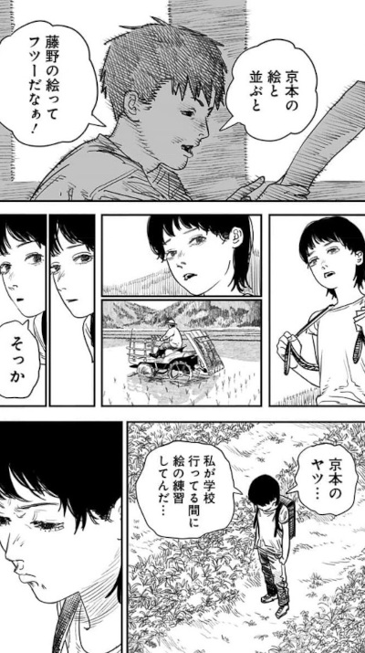 Sia chiaro: non voglio e non posso addentrarmi in una critica artistica, tanto scarsa è rapsodica è la mia conoscenza del fumetto giapponese. Mi limiterò a due osservazioni: una che riguarda specificatamente la narrativa di Fujimoto e una più generale sul medium fumetto.