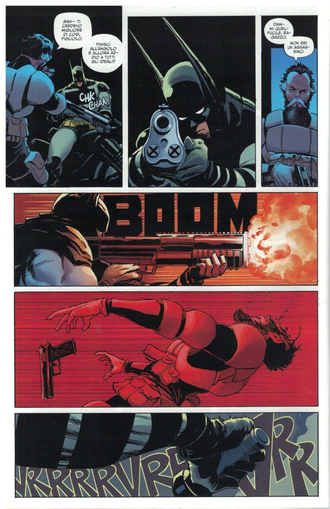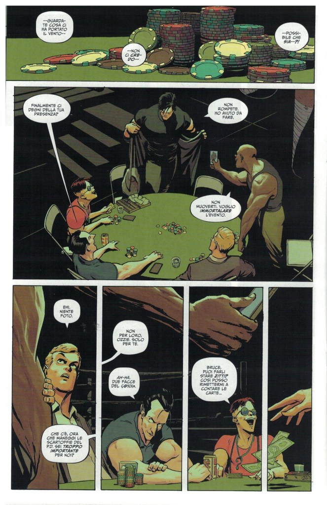 Batman Absolute, che riprende (come un’altra serie in uscita nelle fumetterie su Absolute Wonder Woman) le conseguenze dell’albo DC All In Special, vede proprio come Caped Crusader una riscrittura completa del mondo di Batman così come lo conosciamo grazie alle sceneggiature di Scott Snyder (ho presentato qui, qualche mese fa, il suo CLEAR e conto di analizzare altre sue opere) e le matite di Nick Dragotta. Si tratta di una miniserie in cinque numeri (il secondo uscito nei giorni scorsi) in cui ritroviamo James Gordon sindaco di Gotham, Alfred Pennyworth spia inglese affascinato dal modo adottato da Bruce Wayne – non multimilionario proprietario di aziende ma “semplice” lavoratore edile – per combattere il crimine. L’unico super criminale sembra qui essere Sionis, mentre gli altri abituali arcinemici del Batman li vediamo giocare tranquillamente a poker assieme a Bruce. Ovviamente è ancora presto per tracciare un giudizio definitivo, ma la storia si fa decisamente intrigante, aiutata da un’ottima perizia grafica di Dragotta che, specialmente nelle scene drammatiche e in quelle d’azione, si rifà abbastanza esplicitamente ad altri numi tutelari del fumetto batmaniano dal Frank Miller del Cavaliere Oscuro al Jock del Batman che ride.