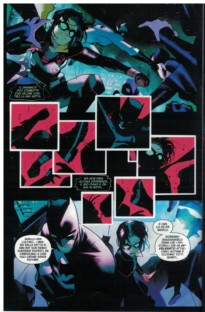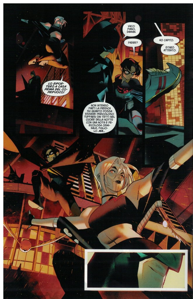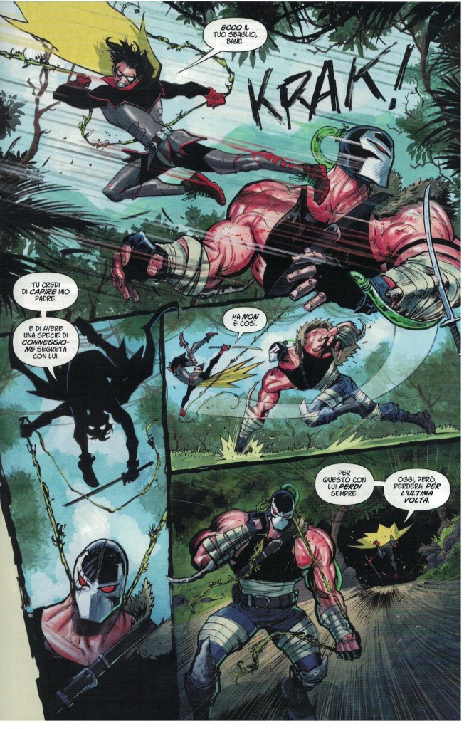In realtà il timore era aumentato dalla delusione per la serie Batman e Robin (di cui avevo già scritto qui). La serie, in mano fino al numero 13 (aprile 2025) a Joshua Williamson per le storie, aveva più buchi nella trama di un vestito lasciato in un armadio infestato dalle tarme. Se fino al numero 10 l’insufficienza della sceneggiatura era compensata dai disegni semplicemente squisiti di Simone Di Meo (decisamente ispirato dall’estetica manga) e belli di Nikola Čižmešija che si alternavano, dal numero 11 al numero 13 vengono sostituiti da Juan Ferreyra, le cui anatomie gridano semplicemente vendetta. Dal numero 14 – uscito il mese scorso – tutto il team creativo cambia con Phillip Kennedy Johnson alla storia e Javi Fernandez alle matite. In realtà Fernandez disegna ottime scene d’azione ma è al contrario assolutamente non a suo agio con le tavole “descrittive” in cui paradossalmente manca qualsiasi tipo di movimento che invece riesce ad imprimere a quelle d’azione grazie soprattutto alla scelta di punti di vista interessanti e mobili. La storia fin qui è comunque decisamente prescindibile e anche il tema del conflitto tra padre e figlio su desideri e priorità sembra più che altro un fil rouge per garantire la continuità tra un numero e l’altro e coprire la banalità delle motivazioni del criminale di turno (siamo ai livelli del telefilm anni ‘60). Dal numero 14 anche le copertine, fin qui di Di Meo, passano (purtroppo) in mano a Fernandez.