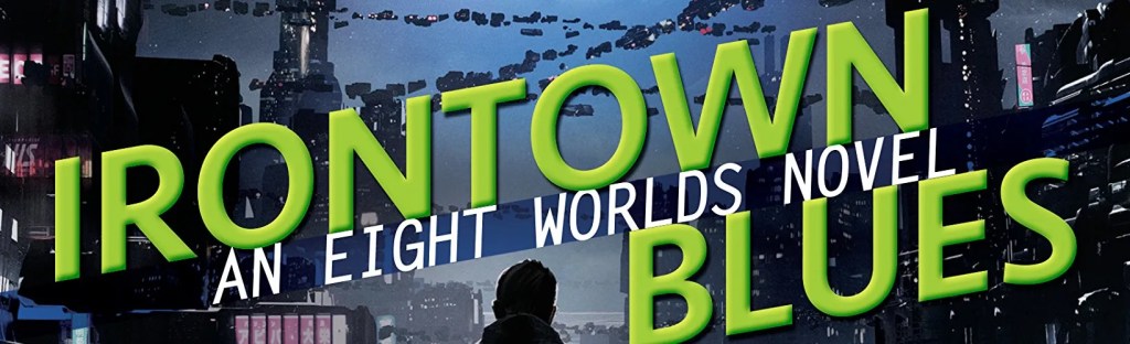 In realtà non siamo nella Los Angeles tra gli anni ‘30 e ‘40 del XX secolo ma ci troviamo sulla Luna, diversi secoli nel futuro, dopo che un’umanità scacciata dalla Terra da invasori alieni, vive sugli Otto Mondi (e Irontown Blues, pur essendo autoconclusivo, fa parte di questa serie che comprende anche Linea calda Ophiucus, La spiaggia d’acciaio e il non ancora tradotto The Golden Globe), tra cui c’è appunto la Luna dove in secoli sono stati scavati canyon e costruite città protette dal vuoto esterno. I protagonisti del romanzo sono Christopher Bach e Sherlock il suo segugio ciberneticamente modificato. Come in qualsiasi noir classico la storia inizia quando vengono ingaggiati dalla classica “dark lady” per scoprire chi l’abbia contagiata con una misteriosa e tenace forma di lebbra (in un futuro in cui le malattie comuni sono state praticamente debellate) durante una notte di sesso occasionale.