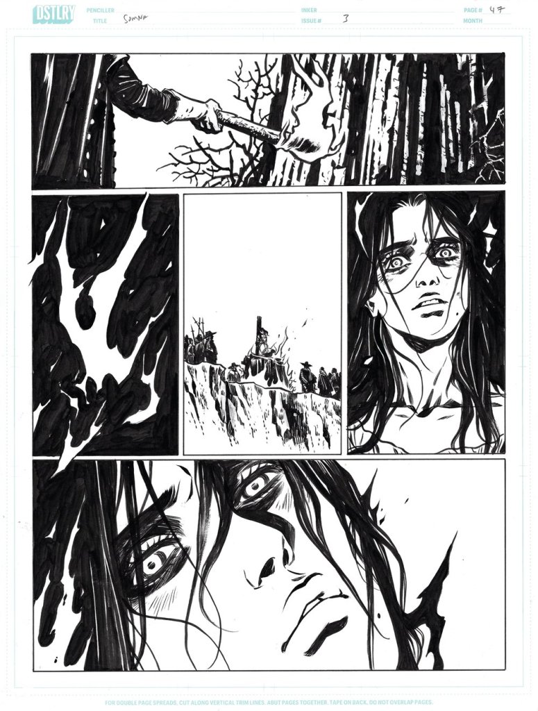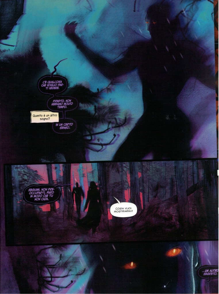 Da un punto di vista narrativo, al tema della caccia alle streghe si affianca quello vagamente poliziesco della ricerca del reale colpevole dell’uccisione del marito di Maja e realtà e fantasia onirica s’intrecciano sempre più fino al tragico finale. Da un punto di vista grafico Cloonan e Lotay si scambiano meravigliosamente i compiti: Cloonan utilizza un registro tipicamente fumettistico e colori “piatti” per rappresentare il mondo della veglia mentre Lotay utilizza il registro pittorico con colori “pastosi” per quello onirico.