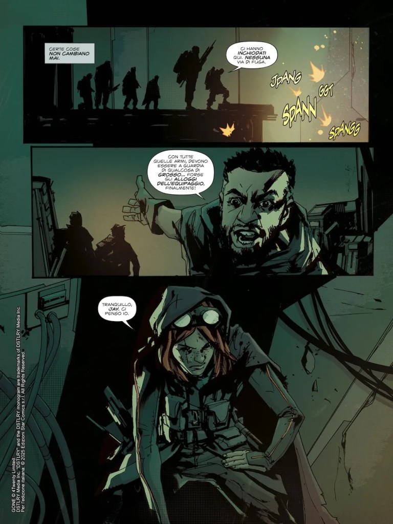 Pur con questo non proprio irrilevante difetto, Gone resta comunque un’opera piacevole e appassionante. Tra l’altro aggiunto alla fine della storia c’è nel volume (oltre a cover alternative e a una galleria di bozzetti) il racconto breve La Clandestina che probabilmente è lo spunto che ha dato l’idea per espandere la storia in Gone.