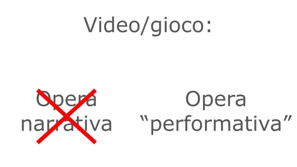 Sostanzialmente quello che sostiene Bittanti è che il videogioco sia un’opera “performativa”, non “narrativa” e che tra queste due modalità vi sia incompatibilità.