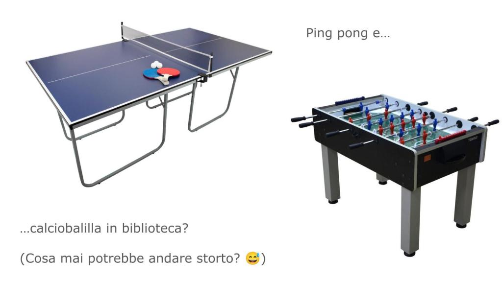 A seguito della vittoria di un bando ministeriale sui giovani in biblioteca da parte di una cordata di associazioni piacentine, in un salone della biblioteca per ragazzi di Piacenza è stata creata la Zona Holden che, come previsto dal progetto doveva essere contemporaneamente per ragazzi e giovani luogo di svago, apprendimento, socializzazione ed espressione. Per questo la sala è stata dotata di palco, di strumenti musicali e di registrazione (per podcast e reel) e sono stati inseriti pure un tavolo da ping pong e un calciobalilla. Il risultato è stato contemporaneamente buono oltre le più rosee aspettative e assai peggiore di quanto si temesse. A cosa si deve questo paradosso? Al fatto che la Zona Holden è stata sì frequentatissima ma che le uniche strumentazioni utilizzate sono state ping pong e calciobalilla. In sostanza la sala è diventata una sorta di sala ricreazione senza che programmi e attrezzature per l’espressione individuale e sociale siano state partecipate o utilizzate. Ovviamente questo risultato pare dare ragione non solo a Francesco Alberoni, ma pure a Bittanti quando segnala la non presenza di legami tra opere performative – i giochi – e opere narrative – i libri della biblioteca a cui pure il progetto era collegato in un’ottica di promozione.