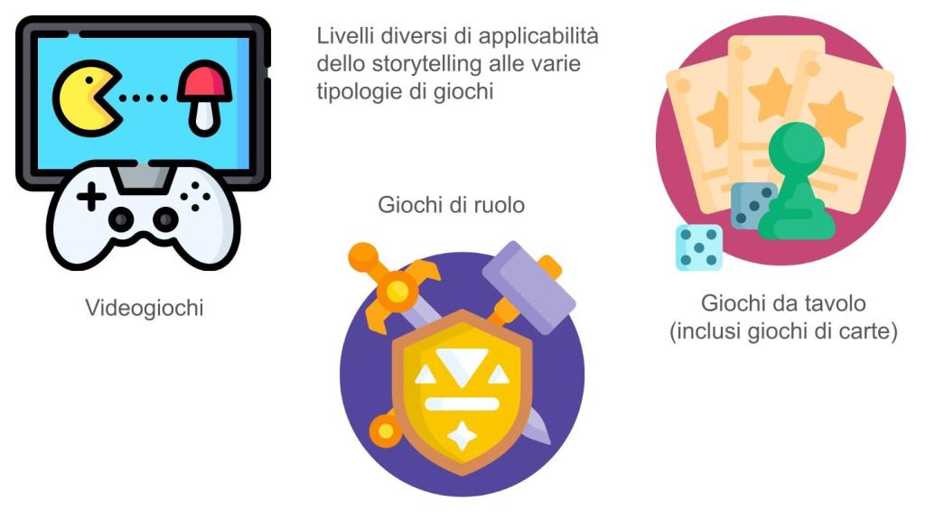 Se per esempio dividiamo i giochi in tre categorie (assolutamente di comodo ed è da sottolineare che sono lasciati fuori i giochi sportivi solo perché è improbabile che siano inseriti nei servizi bibliotecari): giochi da tavolo e di carte, giochi di ruolo e videogiochi, come e quanto l’elemento narrativo impatta in ciascuna delle categorie?