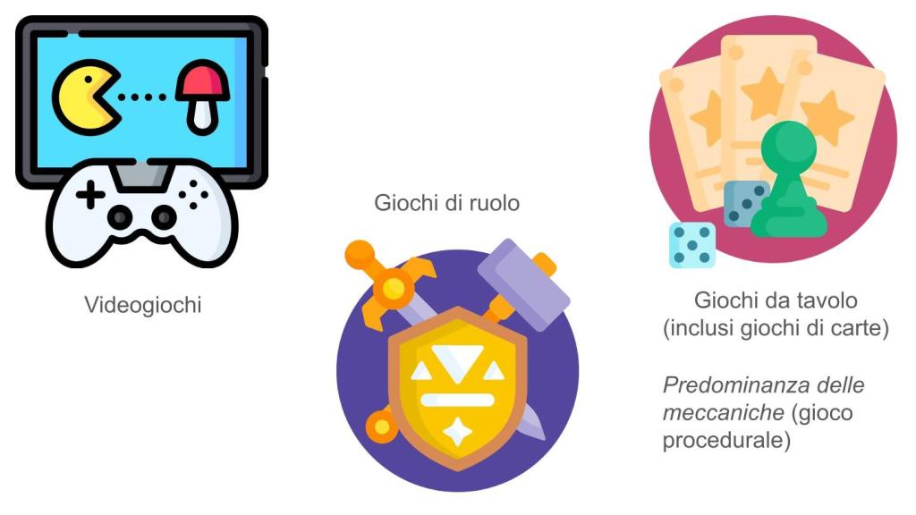 Nella categoria che comprende giochi di tavolo e di carte l’elemento narrativo impatta poco o nulla e possiamo considerare questa categoria di giochi come essenzialmente “procedurale”.