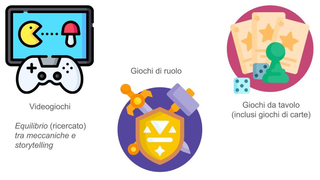 Infine nei videogiochi abbiamo una mescolanza di giochi con elementi narrativi che hanno importanza variabile all’interno dell’esperienza ludica. Per questo anticipo una slide che nella presentazione avevo messo dopo: