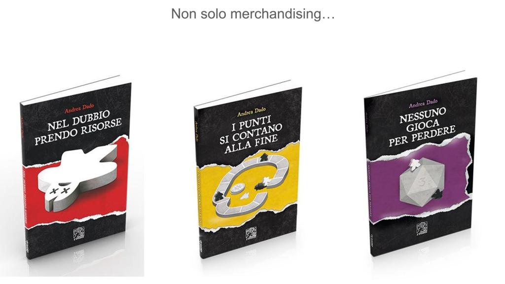 Ma che la letteratura ludica non sia esclusivamente merchandising lo dimostra la trilogia di Andrea Dado: Nel dubbio prendo risorse, I punti si contano alla fine e Nessuno gioca per perdere (tutti pubblicati da DV Giochi rispettivamente nel 2023, 2024 e 2025). Andrea Dado, torinese, intorno ai 50 anni, racconta del confronto tra un serial killer che si ispira per i suoi delitti ai giochi da tavolo ed uno psicologo senza una mano, sopravvissutogli fortunosamente, che cerca d’incastrarlo. Sullo sfondo della vicenda il mondo di game designer, editori, influencer, appassionati e associazioni che ruotano attorno al gioco da tavolo, con ritratti gustosi e spesso impietosi. Di tutti e tre i romanzi ho scritto sul blog e a quei post rimando per approfondimenti. Tra l’altro trovo molto interessante che Dado sul suo blog Dado critico si descriva così: “Io non recensisco un bel niente. Io racconto.” Ecco ancora in gioco la narrazione, lo storytelling. Magari un gioco – quelli di cui scrive Dado sono generalmente giochi da tavolo, di cui è anche autore – non ha elementi narrativi, ma spiegarlo (anche in una recensione) rischia di diventare noioso al pari di un regolamento. Cosa ovviamente diversa raccontarlo.