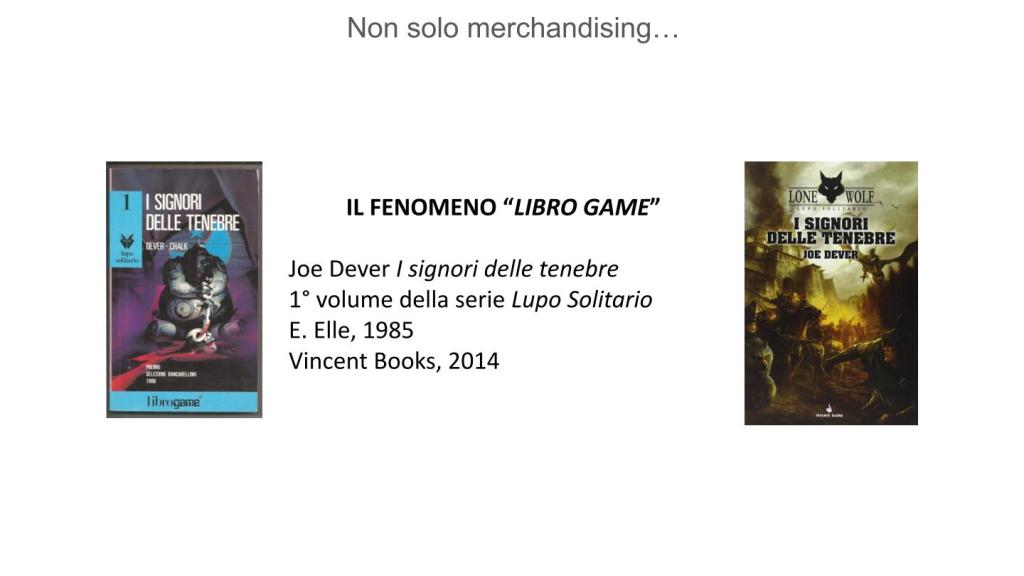 Parlare invece di libri-game serve per unire i due discorsi relativi alla narrazione e alla transmedialità. I libri-game che erano un genere ubiquo nella seconda metà degli anni Ottanta, all’inizio degli anni Novanta sono stati progressivamente soppiantati dai videogiochi ma senza sparire del tutto e col nuovo secolo sono tornati a riprendersi il posto nel cuore e nelle collezioni di un numero sempre maggiore di appassionati.