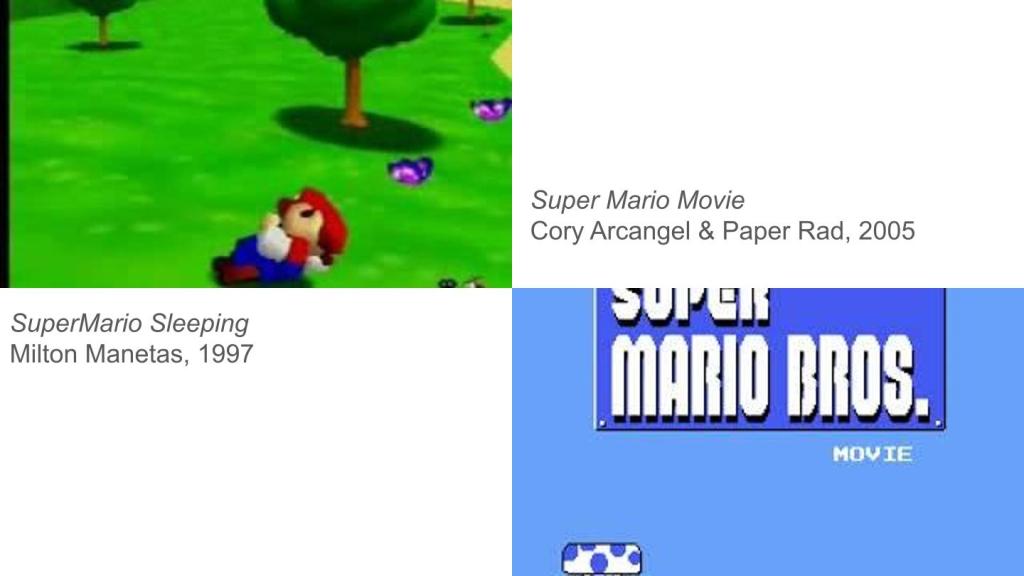SUPERMARIO SLEEPING (with butterflies). An Art-Machinima movie by Miltos Manetas. Made with SuperMario for Nintendo 64, first shown at the exhibition “Fatto in Italia”, (Made in Italy), ICA, London, 1997.