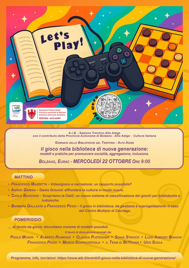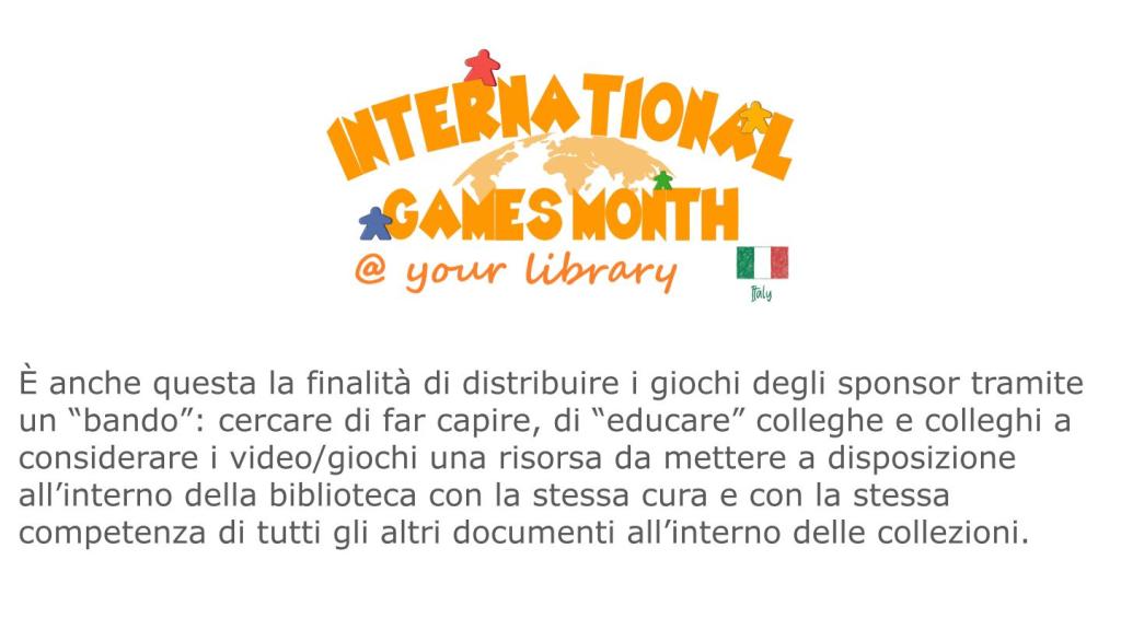 Alla bibliotecaria e al bibliotecario sono demandati (del resto non parlo a caso ma seguo le Linee guida IFLA per i servizi bibliotecari per ragazze e ragazzi 0-18) capacità e competenze per integrare al meglio tutte le varie possibili iniziative ludiche all’interno dei servizi bibliotecari e la “ludobiblioteconomia” (come la “ludodidattica” per le e gli insegnanti) deve essere (sempre di più) oggetto di formazione di bibliotecarie e bibliotecari.