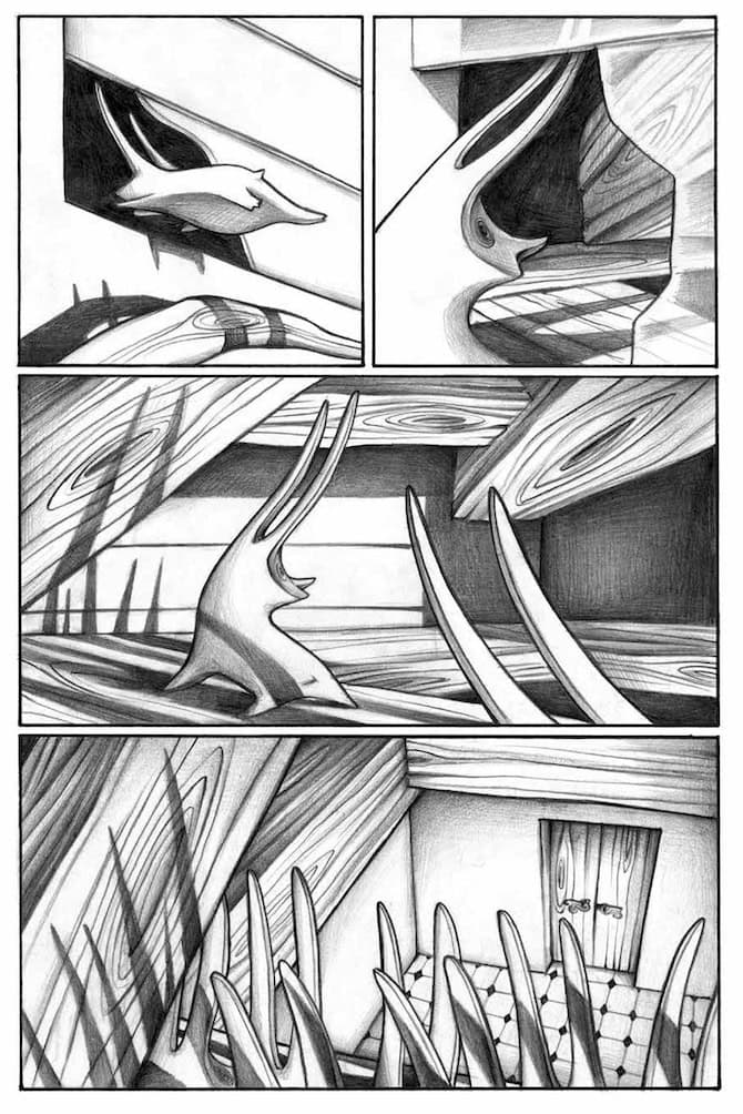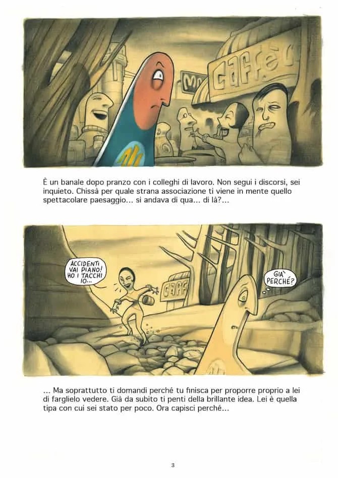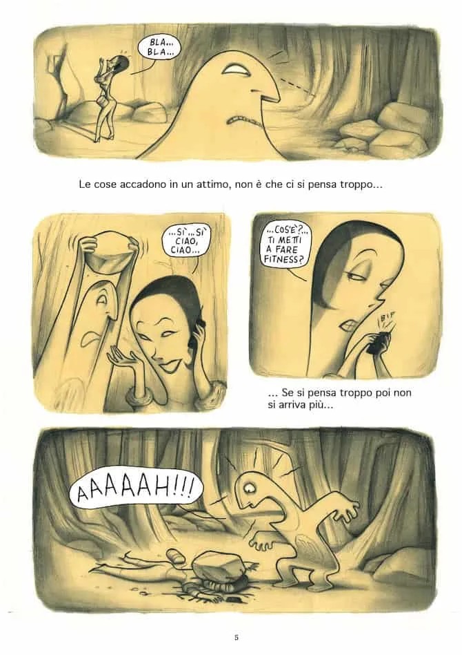 Il tratto di Francesca è inconfondibile e meraviglioso sia che utilizzi il bianco e nero come in Pastil, in cui le linee s’intrecciano a formare labirinti che insieme imprigionano e guidano lo sguardo del lettore, sia che utilizzi i colori come in Bang! Sei morto, dove sono i colori stessi ad imprimere un loro ritmo alla storia. Insomma si tratta di altri due libri di Francesca che dovete leggere assolutamente (in attesa della pubblicazione del suo nuovo su cui ancora sta lavorando).