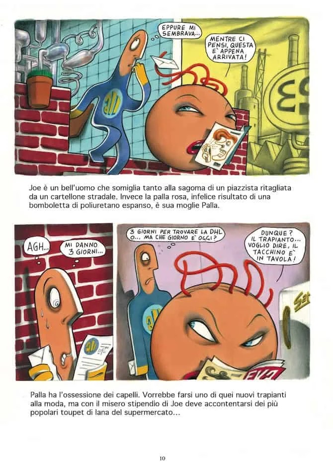 Bang! Sei morto è una sorta di La donna che visse due volte di Alfred Hitchcock in acido. Abbiamo un ingenuo protagonista – tormentato da incubi e da vuoti di memoria – che viene convinto che il consorte della affascinante giovane di cui si innamora sia un perverso aguzzino, ma in realtà viene raggirato per far sì che l’affascinante giovane (e la propria perfida moglie) possano godersi chi l’amato e chi i soldi. Ma nel mondo lisergicamente ipercolorato di Bang! Sei morto nulla è come sembra e anche la morte del protagonista non sarà esattamente definitiva. Bang! Sei morto è un interessante mix di fumetto e di storia illustrata: le vignette in alcuni casi fungono da illustrazioni per il testo. I personaggi hanno le tipiche forme strane ghermandiane: il protagonista è bidimensionale, quasi a mostrare anche graficamente la sua ingenuità, mentre la moglie è una palla turbata dalla mancanza di capelli e la giovane amante è una sorta di Pastil adulta, che continua a rimpinzarsi di caramelle balsamiche antidepressive.