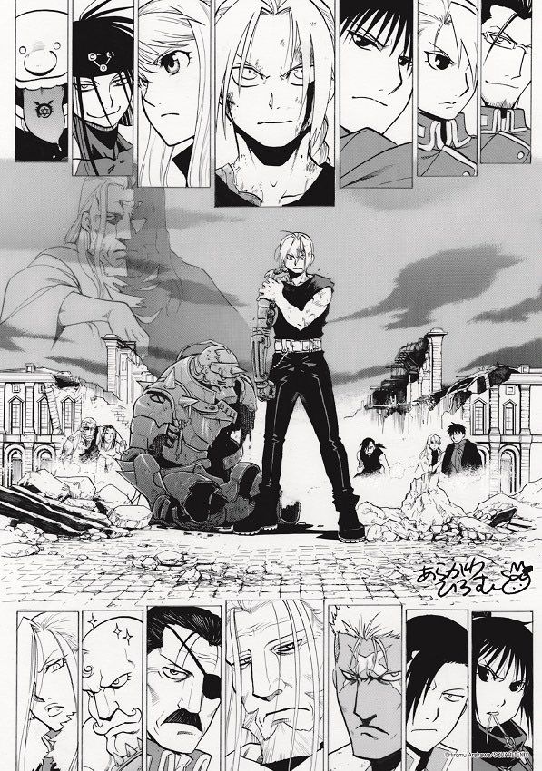 Fullmetal Alchemist – ambientato in un inizio di ‘900 alternativo – narra la storia di due fratelli – Edward e Alphonse -, figli di un rinomato alchimista che ha abbandonato la famiglia, che vedono ammalarsi e morire la madre. Senza la guida del padre affrontano lo studio dell’alchimia per riportare in vita la madre, ma falliscono e Edward rimane senza un braccio e senza una gamba mentre Alphonse è solo un’anima disincarnata che Edward riesce a salvare legandola a un’armatura metallica. Per riuscire a riavere i loro corpi i due accettano di entrare nell’esercito come condizione che permetta loro di approfondire gli studi dell’alchimia. Ma scoprono un terribile complotto con cui gli homunculus infiltrati tra gli esseri umani vogliono sterminare l’intera popolazione dello stato di Amestris per creare una pietra filosofale che li renda divinità immortali. I due fratelli, assieme ad un gruppo eterogeneo ma coeso, dovranno sventare il complotto e riuscire nel contempo a riportare Alphonse nel suo corpo di ragazzo.
