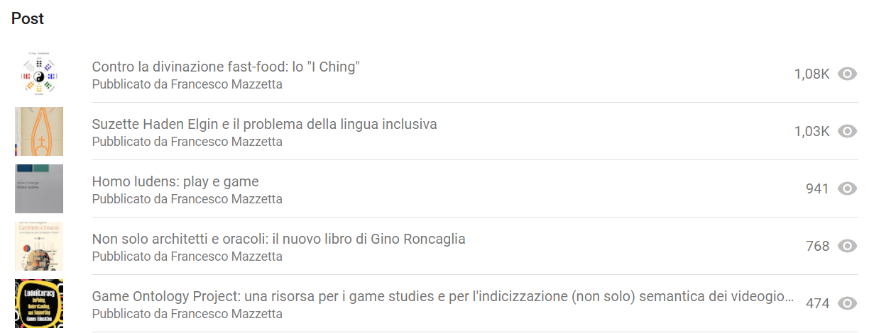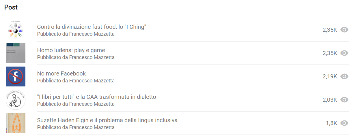 E qui i cinque post con complessivamente maggiori visualizzazioni: