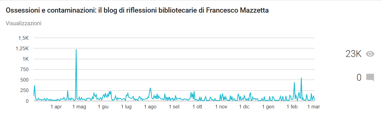 Alla fine febbraio di quest’anno sono passati 2 anni da quando ho dismesso il “secondo” blog su Blogspot e ho acquistato un profilo “professionale” su WordPress. L’acquisto di un profilo professionale è stato motivato dalla possibilità di scegliere tra un più ampio ventaglio di layout e, ancor più importante, per evitare di imporre a lettori e lettrici le fastidiose pubblicità inserite da WordPress nei blog gratuiti.