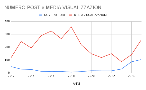 | ANNI | NUMERO POST | VISUALIZZAZIONI | MEDIA VISUALIZZAZIONI |