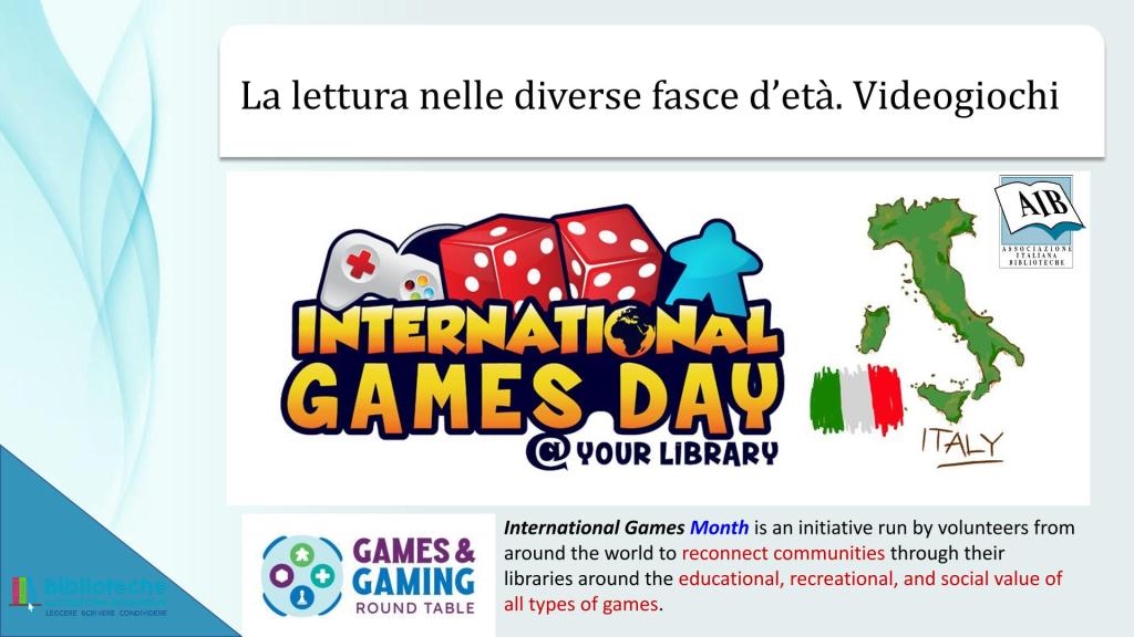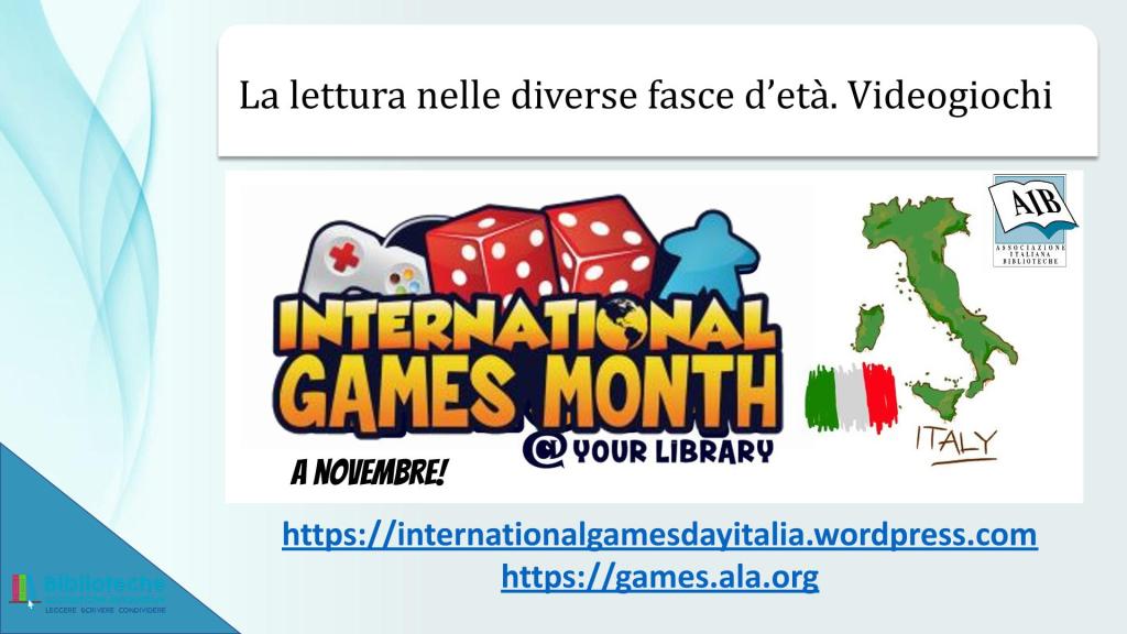 - Blog legato all’evento annuale International Games Month @ your library: https://internationalgamesdayitalia.wordpress.com/